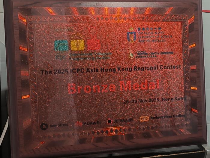 比赛吸引了来自亚洲区域的136支高校队伍同台竞技,我校ACM团队成员(吴庭信、王俊喆、陈一夫)凭借扎实的算法功底和出色的团队协作,成功斩获铜奖,为学校赢得了荣誉。