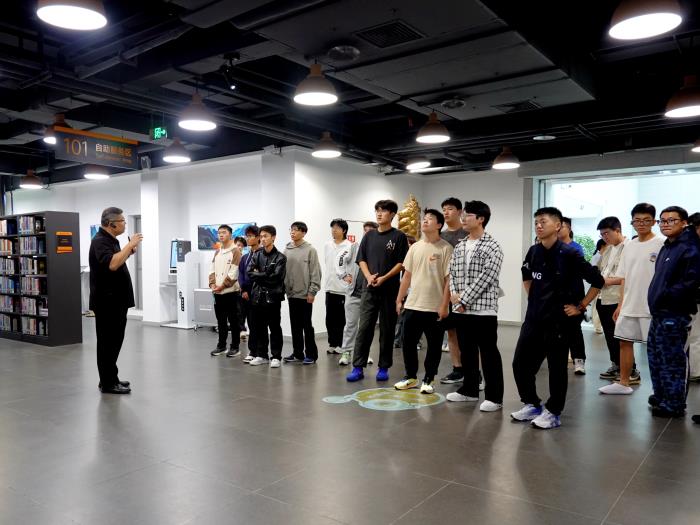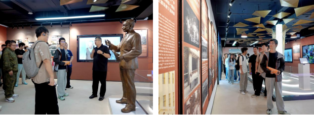 接着,来到了位于场馆中心的李华天纪念馆,学生们了解到李华天教授是中国最早从事计算机与网络研究的科学家之一,为我国计算机领域发展作出卓越贡献。他放弃国外学业归国,投身教育事业,研制出中国首台能解题电子模拟计算机等。纪念馆中的铜像《师者 - 李华天》展现了李教授的风采,他“甘为人梯”的精神由弟子传承,还设立了“华天奖学金”。学校设立纪念馆,希望学生传承精神,成为有担当的专业人才。
