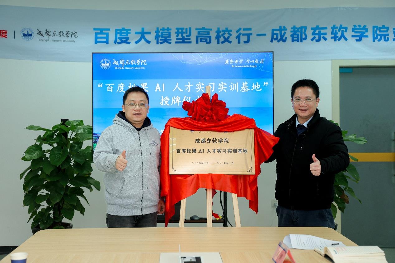 “百度松果AI人才实习实训基地”的正式揭牌,标志着成都东软学院与百度公司的合作迈入新阶段。未来,双方将以实训基地为纽带,持续深化产教融合、校企合作,在课程建设、实训实践、人才培养等方面实现资源共享、优势互补,为人工智能产业输送更多高素质应用型人才,助力行业高质量发展。