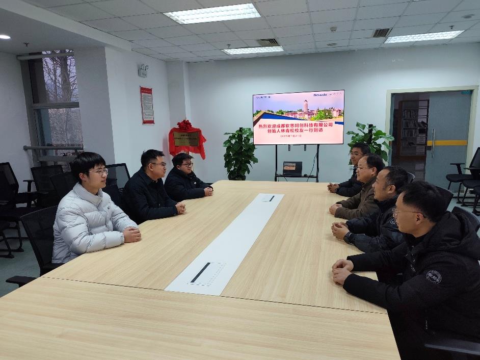 为深入推进校企合作与产教融合,共同把握人工智能发展新机遇,2026年1月21日下午,成都软思同创科技有限公司创始人、我校校友林青松一行回到母校进行交流访问。智能科学与工程学院副院长陈建,数据科学与大数据技术系副主任贺敏、李波以及骨干教师张小华共同接待,并围绕AI技术发展与校企合作前景展开深入探讨。