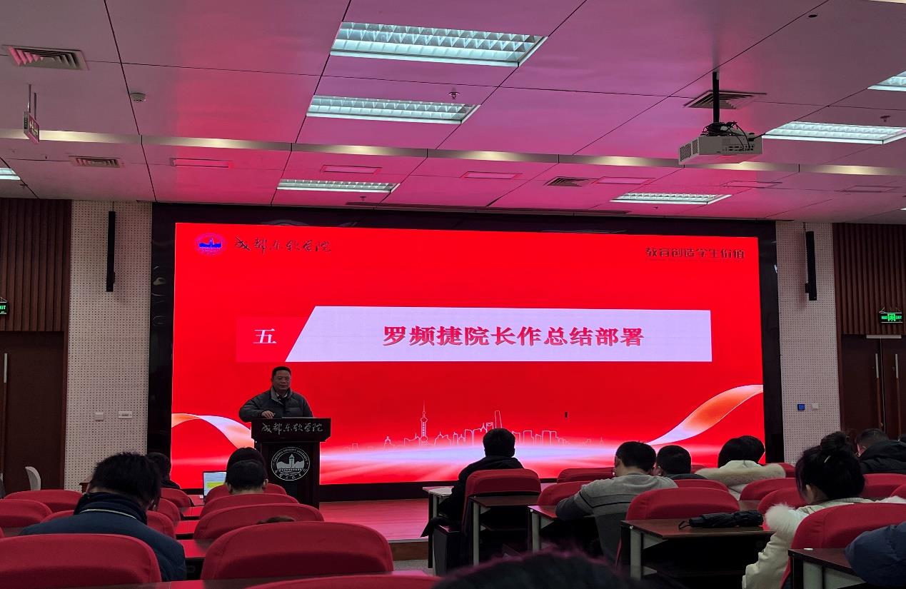 罗频捷院长作总结部署,介绍学院发展理念与组织架构规划,强调将坚持公平、公开、公正原则完善制度体系。他指出,人工智能时代已全面到来,教师需主动拥抱AI、善用AI,培养学生的工具应用能力、辩证思维与快速适应能力。未来教学要坚持以学生为中心,推进线上线下一体化创新;科研工作要强化团队协作,依托学校大模型中心资源,拓展横向与纵向项目,提升科研经费规模与成果质量。罗院长还为教师布置假期学习任务,鼓励大家结合专业方向深化AI技术学习与应用。