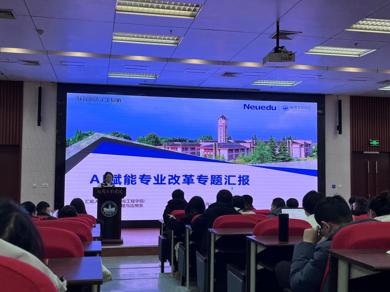 各系副主任围绕AI赋能专业建设作专题研讨汇报,结合专业特色提出改革思路。智能工程系田霖副主任提出分阶段推进专业知识图谱构建,基础课程侧重AI辅助个性化学习筑牢根基,专业课程聚焦AI工具应用与创新能力培养,计划分三阶段完成核心课程试点与全面推广。